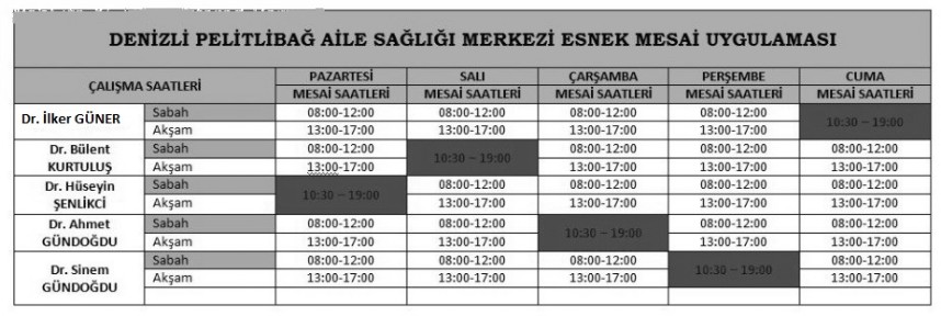 Mesai Saatleri - PELITLIBAG ASM